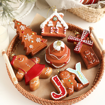 Gingerbread Man Ornaments for Christmas Tree, Chef Santa Claus Ice Cream Assorted Gingerbread Figurines Decorations Ornaments